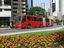 Marcopolo bus, made in Brazil, in the city of Curitiba