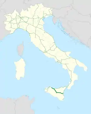 The motorway is connected to the A20 Messina-Palermo and is linked to the A18 Catania-Messina by the RA15 (Catania's Ring Road-West).