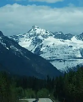 Avalanche Mountain, is a 2,861-metre (9,386-foot) mountain summit located in Glacier National Park in the Selkirk Mountains in British Columbia, Canada. Its nearest higher peak is Mount Macdonald, 2.2 km (1.4 mi) to the north. Mount Sir Donald is 3.83 km (2.38 mi) to the southeast, and Eagle Peak is 1.46 km (0.91 mi) to the south-southeast.[1] The Avalanche Glacier is situated on the east side of the peak, and the Connaught Tunnel lies partially beneath Avalanche Mountain.[4] The peak is visible from eastbound Highway 1, the Trans-Canada Highway approaching Rogers Pass. During winter and spring of each year the western slope, named Avalanche Crest,[5] generates avalanches which can threaten the highway.[6]