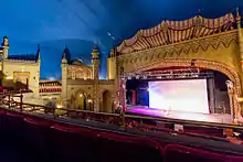 Architecturally, the Avalon Regal's atmospheric and Moorish Revivalist theme was conceived by Austrian-born architect John Eberson, who was nationally known for his exotic motifs. Legend has it that Eberson was inspired by an ornate Persian incense burner he found in an antique market in the French Quarter of New Orleans.[2]