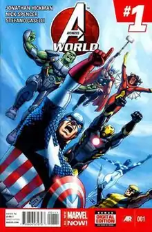 - ↑ Richards, Dave (2013-10-12). "NYCC: Earth's Mightiest Heroes Go Global in Spencer's "Avengers World"". Comic Book Resources. Retrieved 2013-10-15.