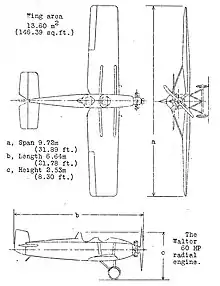 - Powerplant: 1 × Walter NZ 60 5-cylinder air-cooled radial piston engine, 45 kW (60 hp)