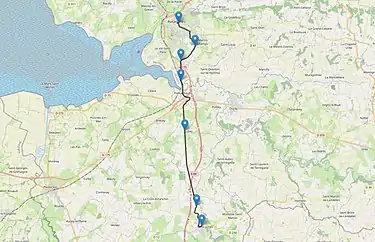 After passing Juilley and Saint-Senier-de-Beuvron in La Croisette, the route ended in Saint-James.[5][7]