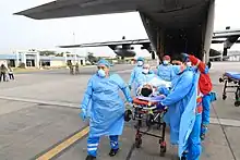 Casualties were sent for treatment at the Huamanga Network and in the Ayacucho Regional Hospital,[55] with 90% of injuries resulting from gunshot wounds according to the Ayacucho regional health system.[8] By 11:30 PM PET, a "red alert" was declared by health authorities in the region, requiring healthcare personnel to remain at treatment centers to care for the wounded.[53] The violent response by authorities caused the collapse of hospital systems in the city, with protesters suffering from gunshot wounds being treated in makeshift triage units, with the regional health system stating "In view of the admission of more injured, tents were expanded and enabled the care and observation of patients, in order to guarantee their care".[54][62] According to the Regional Directorate of Health of Ayacucho, 4 individuals were initially reported being killed.[63] The Ayacucho Regional Health Directorate would later revise their numbers, saying that 10 were killed and 61 were injured.[5][7][52][54][64][6]