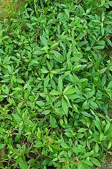 Ayapana triplinervis (aya-pana, water hemp) is a tropical American shrub in the family Asteraceae. This plant has long slender leaves which are often used in traditional medicine.[1] The flowers are pale pink and the thin, hairless stem is reddish in color.[1]