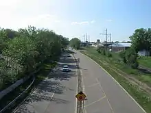 In the 1960s, the city of Saint Paul began construction on the Short Line Road, envisioning a below-grade, limited access direct link between I-35E and I-94.[2] However, local opposition in the Merriam Park neighborhood, coupled with the stunted construction of I-35E due to opposition from the Summit Hill neighborhood, kept the vision from being a reality. A connection was made at grade with Selby Avenue, but the connection with I-35E was not made at this time, forcing southbound travelers to exit on Jefferson Avenue when the road first opened in 1965.