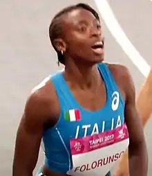 Ayomide Temilade Oluwatoyosi Folorunso (born 17 October 1996) is an Italian athlete specialising in the 400 metres hurdles.[2] She competed in the 4 × 400 metres relay at the 2015 World Championships in Beijing.