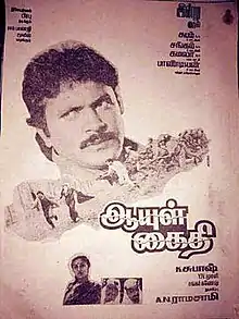 Ayul Kaithi (transl. Life sentence prisoner) is a 1991 Indian Tamil-language crime drama film written and directed by K. Subash, starring Prabhu and Revathi. The film revolves around an escaped prisoner seemingly seeking to kill his ex-girlfriend. It was released on 29 June 1991.[1]