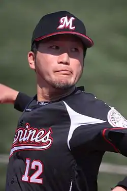 Ayumu Ishikawa (石川 歩, Ishikawa Ayumu, born April 11, 1988) is a Japanese professional baseball pitcher for the Chiba Lotte Marines in Japan's Nippon Professional Baseball.[1]