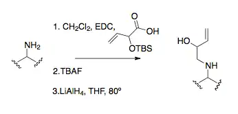 Vinylation can offer additional synthetic advantages, allowing for expanded functionality of the reaction.[23] Organolithium reagents are typically used. Often, a substituent or protecting group will be added to the nitrogen, although this isn't always necessary. The addition of lithium to the reaction has a major effect on starting material stereochemistry, as the nitrogen coordinates to it. Starting materials affected by this coordination generally result in anti aza-Cope precursors, while those that aren't, such as those containing highly substituted, sterically hindered amines, result in syn precursors. Thus the nature of the nitrogen substituent is of high importance.[6][25]