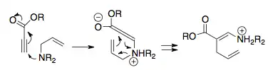 - ↑ Cook G.R.; Barta N.S.; Stille J.R. (1992). "Lewis acid-promoted 3-aza-Cope rearrangement of N-alkyl-N-allyl enamines". The Journal of Organic Chemistry. 57 (2): 461–467. doi:10.1021/jo00028a016.