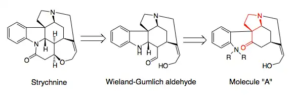 - ↑ Knight, S.D.; Overman, L. E.; Pairaudeau, G. (1993). "Synthesis applications of cationic aza-Cope rearrangements. 26. Enantioselective total synthesis of (−)-strychnine". J. Am. Chem. Soc. 115 (20): 9293–9294. doi:10.1021/ja00073a057.