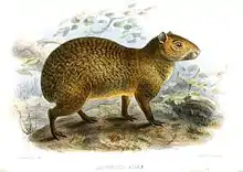 Azara's agouti (Dasyprocta azarae) is an agouti species from the family Dasyproctidae. Found in Brazil, Paraguay, and Argentina, it is named after Spanish naturalist Félix de Azara. The population is unknown and may have gone locally extinct in some areas due to hunting; it is listed as vulnerable in Argentina.