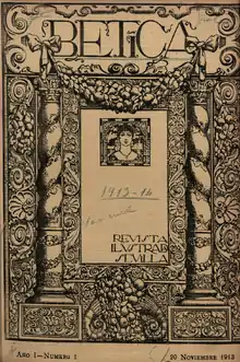 Bética was launched in Seville in November 1913 as a biweekly magazine.[1][2] The magazine was affiliated with the Centros Andaluces.[1] Later its frequency was switched to monthly.[3] The magazine covered literary and cultural work and adopted a modernist and art nouveau approach.[1] It also supported regionalism for Andalusia.[4] It folded in 1917.[3]