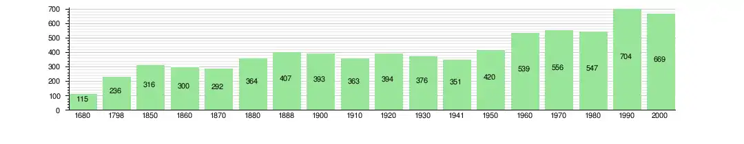 As of 2000, there were 270 private households in the municipality, and an average of 2.4 persons per household.[7] There were 68 households that consist of only one person and 16 households with five or more people. Out of a total of 277 households that answered this question, 24.5% were households made up of just one person and 1 were adults who lived with their parents. Of the rest of the households, there are 95 married couples without children, 94 married couples with children There were 8 single parents with a child or children. There were 4 households that were made up unrelated people and 7 households that were made some sort of institution or another collective housing.[8]