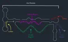 BC200 has three distinct structural domains. The 5' region of the RNA defines one domain and consists of Alu repeat elements. The other two structural domains are a central A-rich region, and a C-rich 3' region specific to BC200.[3] The 5' end of this molecule has both primary and secondary structure that is very similar to 7SL RNA, a signal recognition particle RNA (SRP) which also includes a 5' Alu domain.[13]