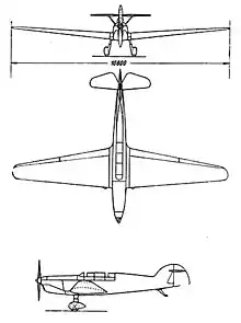 Messerschmitt M 23s had won the Circuit of Europe or Challenge International de Tourisme in both 1929 and 1930, assisting sales of the aircraft. The M.29 was designed to repeat this success. It was a low-wing cantilever monoplane of slightly smaller span than the M.23, with an enclosed continuous cockpit for two in tandem which blended smoothly into a dorsal fairing that extended aft to the fin. The latter carried a wide chord rudder and an all-moving tailplane, mounted on bracing towards the top of the fin. It had a clean cantilever spatted undercarriage. The wings could be folded at wing root hinges, back along the fuselage sides.[1]
