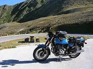 The BMW R65 is a light touring motorcycle introduced by BMW in 1978 to add a mid-size motorcycle to its product line. The original R65, contrary to the views of some commentators, has the same sized frame as the larger R series motorcycles. The R65 does however have a shorter swingarm than its siblings and therefore a shorter bolt-on rear sub-frame; this, along with the shorter front forks and 18" front wheel, gives the illusion that the R65 frame is smaller. The initial model R65 was manufactured until 1984. In 1985 the R65’s engine was put into the same frame and suspension as the R80 which featured a single rear shock absorber (mono-shock).[1] Additionally, between 1981 and 1984, the R65LS was manufactured. This R65 variant has a small triangular fairing that was designed by Hans Muth.[2]
