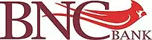 As Bank of North Carolina, BNC used the name BNC Bank in South Carolina and Virginia, and the bank had planned to change to BNC Bank everywhere. However, BNCCORP of North Dakota, which operated as BNC National Bank, protested this change.[10] BNCCORP had filed for BNC Bank trademarks and sent BNC a warning letter in late 2014. BNC protested the trademark request, and BNCCORP sued BNC in September 2015 in federal court, at which time BNC countersued. The BNCCORP suit was dismissed in December 2015 with prejudice.[7] In June 2016, a federal judge denied a restraining order and injunction by BNCCORP.[10] On November 1, 2016, Bank of North Carolina rebranded to BNC Bank across their entire footprint.[11] This included a new logo with a flying cardinal[12] which represented "momentum, vision and growth".[13]