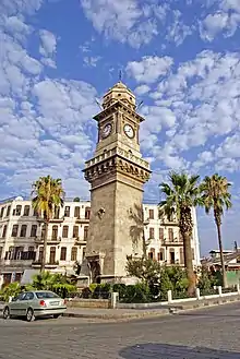 Bab al-Faraj Clock Tower (Arabic: برج ساعة باب الفرج) is one of the main landmarks of Aleppo, Syria. It was built in 1898-1899 by the French[1] architect of Aleppo city Charles Chartier with the help of the Syrian engineer Bakr Sidqi, under the Ottoman ruler of Aleppo; wāli Raif Pasha.[1][2]