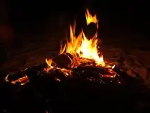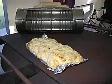 Backwood cooking is a method of cooking without the use of kitchen implements.[4] It commonly takes place in the backwoods, often in combination with wild or conventional camping. Some variants of backwoods cooking allow the use of items of cookware such as a cooking pot;[5] however there are many recipes without any. Some backwoods alternatives to cookware include aluminium foil,[4] fruit skins,[6] and heated stones.[7] Traditionally backwoods cooking takes place over a wood-burning fire because wood is the most available fuel source in the backwoods.[8] As a result, some recipes include information about the intensity of the fire to be used.[6]