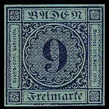 The Baden 9 Kreuzer Error (German: Baden-Fehldruck 9 Kreuzer) is a postage stamp error produced by the historical German state of Baden in 1851.