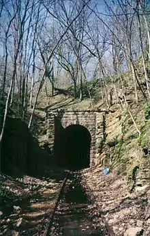 Feasibility studies for the trail began in December 1976.[8] Approval for the trail came in 1997.[7] Some objections were raised in 1999 when both the Green County Board and the South Central Wisconsin Rail Transit Commission passed votes for the rail trail conversion.[9] In 2000, the state Natural Resources Board purchased the right-of-way to develop the trail.[10] Portions of the trail were opened for winter activities.[4] Republican state legislators raised objections to the DNR spending and stewardship in 2003 but were unable to block the $499,000 allocated for improvements to the trail.[11][12] In October 2003, the Wisconsin Building Commission approved spending $303,000 toward restoration of the Stewart Tunnel;[7][13] repairs to the tunnel began in 2005.[14] The Wisconsin DNR held a vote for final approvals of the trail in February 2006.[3] Fitchburg had requested $1 million in funding to pave the trail within the city in 2006 and again in 2008,[15] and was denied funding for a connection to the Cannonball Trail (an extension of the Military Ridge State Trail); the city was also denied funding for a service hub at the junction of the Badger State, Capitol City and Cannonball trails.[16]