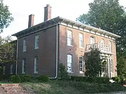 The Badollet House is one of three properties listed on the National Register of Historic Places in the Marion County, Illinois county seat of Salem. The house was built for businessman Howard Badollet and his wife. The house was designed in the Italianate style and is the only surviving Italianate home in Salem. The two-story brick house consists of a front section completed in 1854 and a rear wing finished the following year. The decorative elements of the house were most likely added in the 1860s or 1870s. The house's hip roof features overhanging eaves and a bracketed cornice. The original front porch was replaced by a simpler two-story porch around 1900.[2]