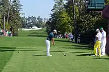 In May 2013, Bae won his first PGA Tour event at the HP Byron Nelson Championship, beating Keegan Bradley by two strokes.[3] Bae entered the final round a single stroke behind Bradley, but birdied four out of his first seven holes to move four ahead. However Bae double-bogeyed the ninth after finding water and bogeyed the 10th and 15th to drop back to a share of the lead. Bae then proceeded to birdie the 16th and when Bradley bogeyed the 17th, Bae had a comfortable two shot lead to come down the 18th and secure his maiden victory.[4][5] He became just the fourth South Korean-born winner on the PGA Tour, after K. J. Choi, Yang Yong-eun, and Kevin Na.