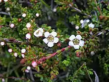 Baeckea gunniana, commonly known as alpine baeckea,[3] is a species of flowering plant in the family Myrtaceae and is endemic to alpine and sub-alpine areas of south-eastern Australia. It is a densely-branched shrub with egg-shaped to oblong leaves and small white flowers with four to six stamens.