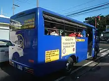 The vehicles used for the Beep Rides system are referred to as the Bagong Jeepney (BEEP).[9] The vehicles are provided by IKK Ichigan, Inc.[4] Some vehicles have their own air-conditioning system and are equipped with GPS tracking devices, dashboard cameras and CCTV cameras.[2][4] BEEP vehicles, depending on the model, have the capacity to seat 16, 24 or 26 passengers at a time.[10][11][12]