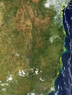 ![]() map of the Bahia mangroves ecoregion (outlined in yellow). | |