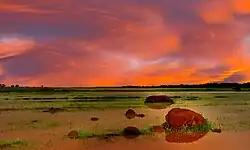 The Bahr al Ghazal's drainage basin is the largest of any of the Nile's sub-basins, measuring 520,000 km2 (200,800 mi2) in size, but it contributes a relatively small amount of water, about 2 m³/s (70 ft³/s) annually, due to tremendous volumes of water being lost in the Sudd wetlands.[2] Seasonally, the river's discharge ranges from nothing to 48 m³/s (1,700 ft³/s).[1]