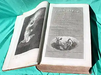 The Bible of William Davison (publisher) exhibited in the Bailiffgate Museum. One of the first fully annotated bibles to be issued as a part-work