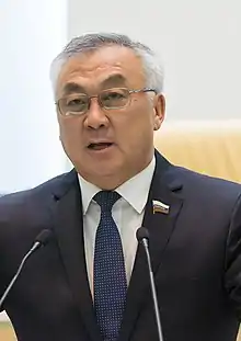 Bair Bayaskhalanovich Zhamsuyev (Russian: Баир Баясхаланович Жамсуев; born on 29 January 1959), is a Russian statesman, who is currently the Senator of Zabaykalsky Krai. a representative from the executive body of state power of the federal subject with powers as a deputy chairman within the Federation Council Committee on International Affairs. Zhamsuyev was the 3rd and last Governor (Head) of Agin-Buryat Autonomous Okrug, as he served from 1997 to 2008. He was the Member of the State Council of Russia from 2001 to 2008. He was also the Member of the Presidium of the State Council of the Russia from 2006 to 2007. He was ranked colonel. He was awarded Active State Councilor of the Russian Federation, 3rd Class.[1]