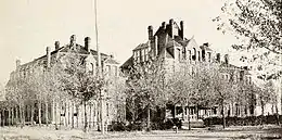 Baird College was a women's educational facility founded in 1885, opening on September 29[1] by Priscilla Baird and Homer T. Baird in Clinton, Missouri.[2][3] The school was a non-sectarian Christian school.[4] Baird and her husband had previously run a school at Hardin College until the semester ended in June, 1885.[2] The Bairds spent $75,000 to complete the four-story building with three-story wings. There were 55 bedrooms and a total of 110 rooms, not counting the hallways and two large staircases. The façade was brick on a dressed-stone foundation. Many modern conveniences, including bathrooms on every floor, fire escapes, gas lighting, speaking tubes and electric bells, were provided for the students' comfort.[5]