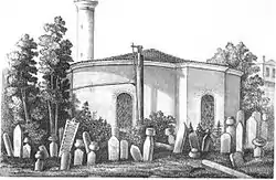Nothing is known about the history of this small round building, erected between the fifth and the sixth century, during Byzantine times.[2] According to some scholars it could have been a burial place,[2][3] while others think that it was the library of a monastery.[2][4] In the 13th century an almost square burial room was erected, making certain the usage of the building as a mausoleum in the Palaiologan period.[2]
