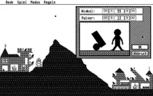 Ballerburg is a turnbased Artillery game from 1987, written in C by Eckhard Kruse for the Atari ST. The game was distributed free of charge as public domain software. It was also donationware as the author asked for donations of 20 DM, offering as incentive the source code for the game.[1]