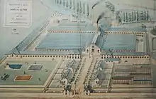 In 1751, Louis XV granted Jean Vaillé the right to create the Manufacture Royale du Château du Park, otherwise known as the royal factory of the Parc de Châteaux, close to the castle of Chateauroux, a pioneer town of the clothing industry.[3] Construction commenced in 1752 and the enterprise became fully operational in 1755.[4] Although it went through periods of prosperity following more difficult stages, the Manufacture laid a solid foundation for the regional economy as the leading business in Châteauroux and Bas-Berry. Consequently, it reinforced the long standing local textile tradition that continues to this day. The organisation and factory have been the subject of numerous publications due to its management and the respect given to the lives of its workers.