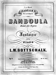 In 1848, the American composer Louis Moreau Gottschalk, born in New Orleans, Louisiana, and whose maternal grandmother was a native of Saint-Domingue, composed a piece entitled Bamboula, the first of four Creole inspired piano works known as his Louisiana Quartet.