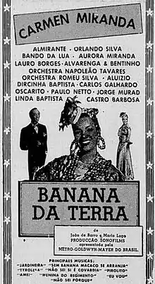 Banana da Terra (English: Banana of the Land) is a 1939 Brazilian musical film directed by Ruy Costa and written by Braguinha and Mário Lago.[1] The film stars Carmen Miranda, Dircinha Batista and Aloysio de Oliveira. It was Miranda's last film in Brazil, before she moved to Hollywood.[2]