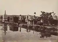 There is a 360 ft (109.7 m) square water tank in the forefront of the temple at the entrance, which is locally called as Haridra Tirtha, a corrupted version of the name Harishchandra Tirtha. The pond is enclosed with stone mantapas (halls) on three sides.[4][5][9][10][11] A pradakshina or circumambulatory path surrounds the tank.[12]