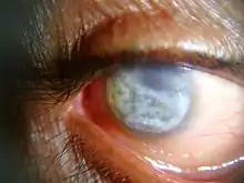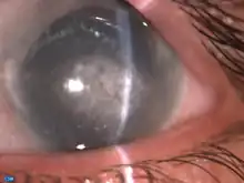 Band keratopathy is a corneal disease derived from the appearance of calcium on the central cornea. This is an example of metastatic calcification, which by definition, occurs in the presence of hypercalcemia.[1][2]