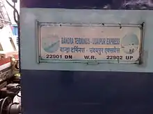 - ↑ "22901/Bandra Terminus - Udaipur Superfast Express". India Rail Info.
