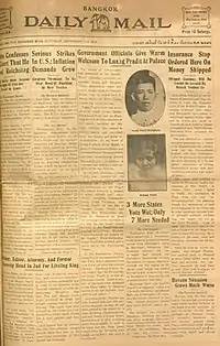 - ↑ "Bangkok Daily Mail Resumes Publication On Payment Of Deposit". The Straits Times. 22 August 1933. p. 12. Retrieved 14 November 2021 – via newspaperSG.