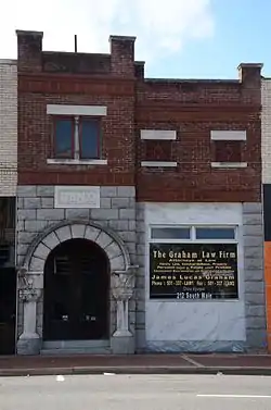 The Bank of Malvern is a historic commercial building at 212 South Main Street in Malvern, Arkansas. It is a single-story masonry structure, sharing party walls with neighboring buildings in downtown Malvern. Its lower level is Romanesque in style, with rusticated stone forming an entrance arch on the left, and acting as a piers around the glass display window on the right. Above this is a lighter brick construction, with bands of decorative terra cotta rising to a parapet. The building was constructed in 1889, and its upper portion rebuilt in 1896 following a fire. It is a relatively rare example of Romanesque architecture in the state.[2]