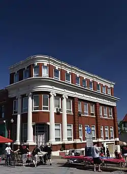 Bank of St. Albans Building, also known as St. Albans City Building, is a historic bank building located at St. Albans, Kanawha County, West Virginia. It was built in 1906, and is a three-story, masonry building in the Classical Revival style. The front facade features two sets of fluted columns with Ionic order capitals. It housed a bank until 1961, after which it was occupied by city offices.[2]
