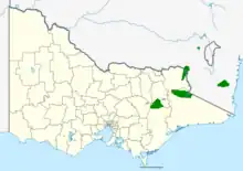 Most populations are located south or east of the Great Dividing Range, the exception being the Snowy Mountains population. The Kybean Range population is contiguous, while the others are fragmented.[23] From west to east the populations are: