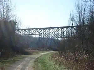 The Banning Railroad Bridge is a structure that carries the Wheeling and Lake Erie Railway across the Youghiogheny River in Perry Township, Fayette County, Pennsylvania.