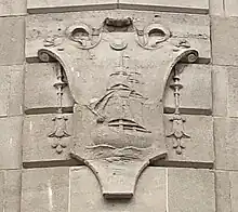 Detail of the head office on rue de Namur, depicting a ship symbolizing overseas (French: outremer) trade